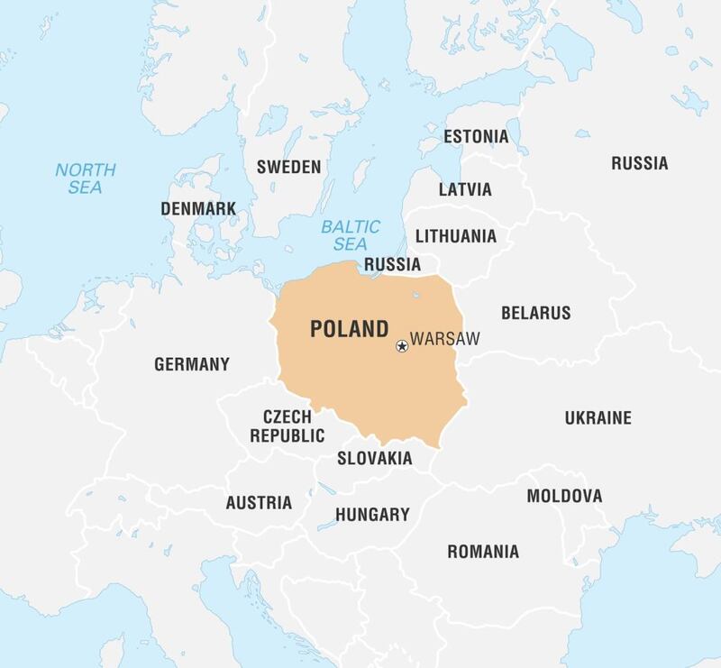 Poland shares a land border to its north with Russia.Encyclopaedia Britannica/Universal Images Group via Getty