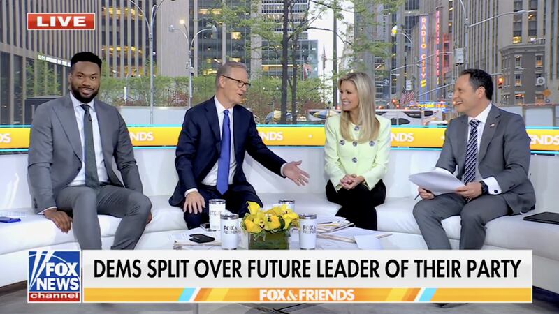 Lawrence Jones looks awkward as Kilmeade makes the gag about asking AOC out.Fox News