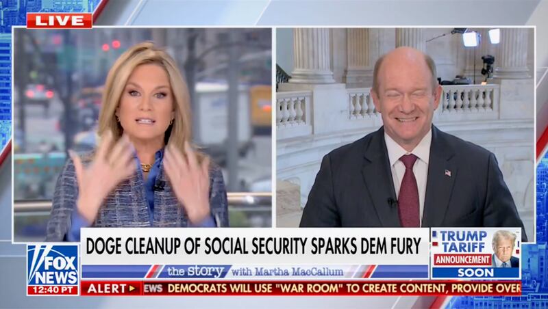 Delaware’s Chris Coons butted heads with a particularly riled up Martha MacCallum.Fox News