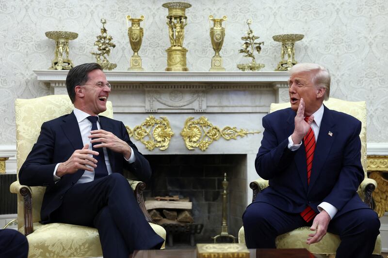 Donald Trump and Mark Rutte share one of many laughs in the Oval Office on Thursday.Evelyn Hockstein/REUTERS