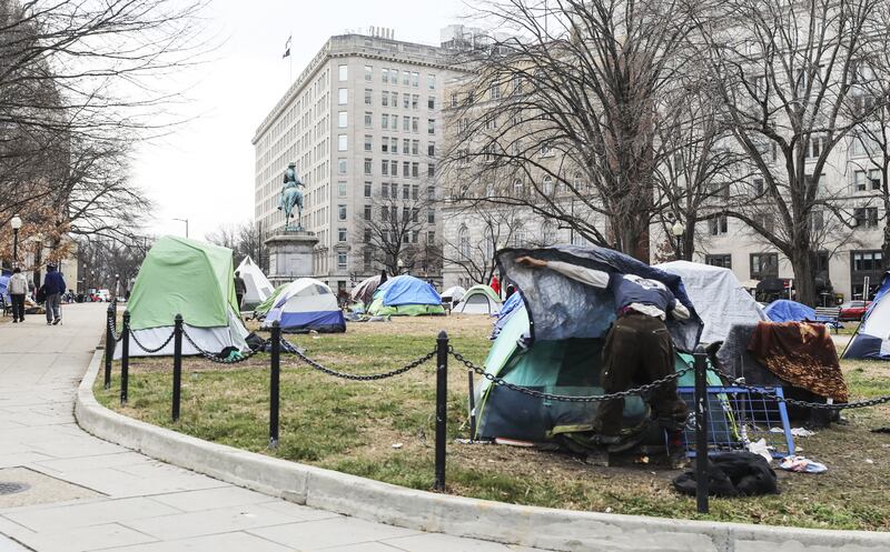 A 2023 homeless encampment pictured in McPherson Square near the White House in Washington, D.C.Anadolu Agency via Getty Images