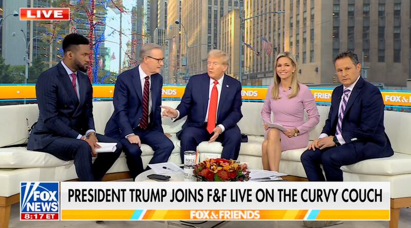 Trump used this otherwise cozy appearance on “Fox & Friends” to demand an end to “negative ads” about him.Fox News